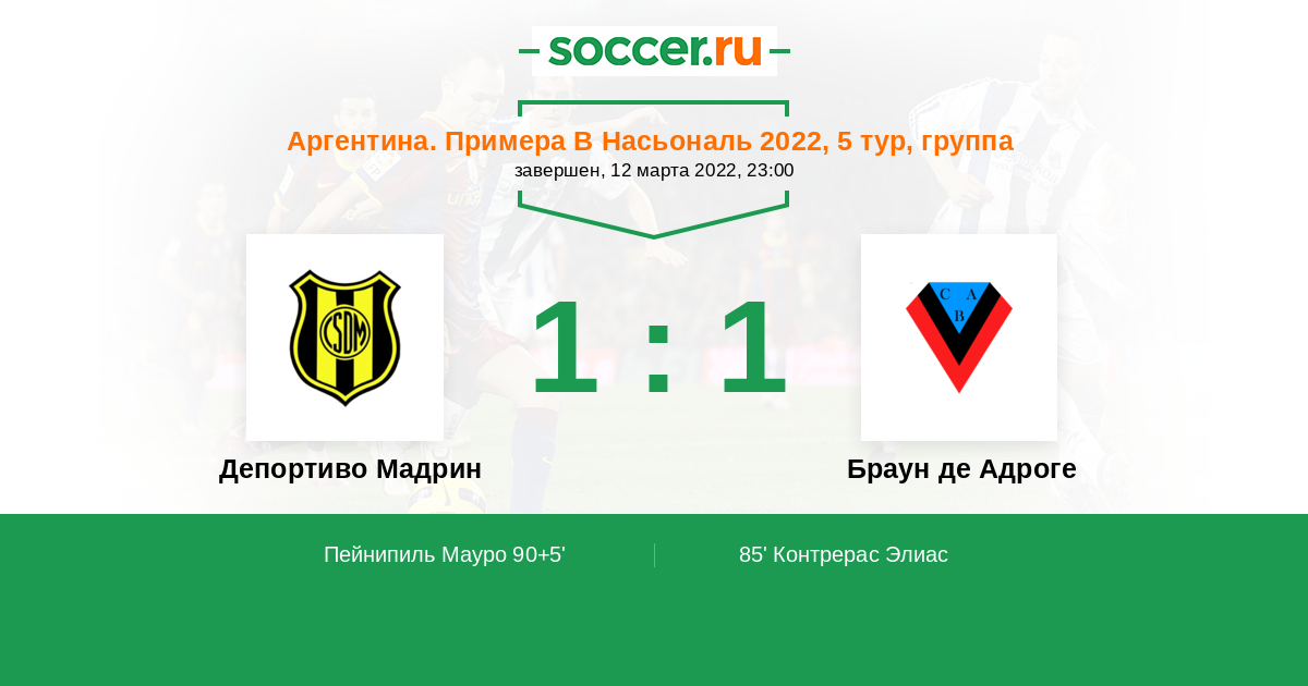 Депортиво Мадрин - Браун де Адроге: обзор матча 12 марта 2022
