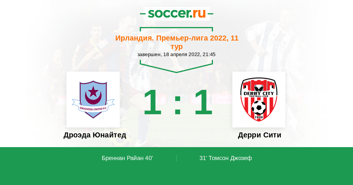 Дроэда Юнайтед - Дерри Сити: обзор матча 18 апреля 2022
