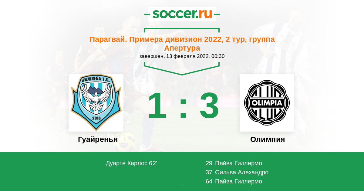 Гуайренья - Олимпия: обзор матча 13 февраля 2022