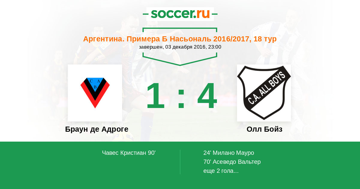 Браун де Адроге - Олл Бойз: обзор матча 3 декабря 2016