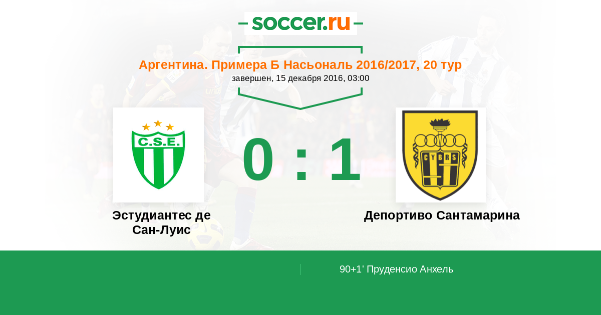 Эстудиантес де Сан-Луис - Депортиво Сантамарина: обзор матча 15 декабря 2016