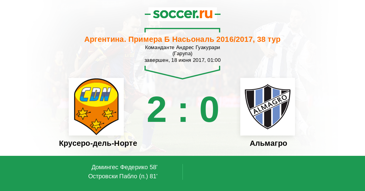 Крусеро-дель-Норте - Альмагро: обзор матча 18 июня 2017