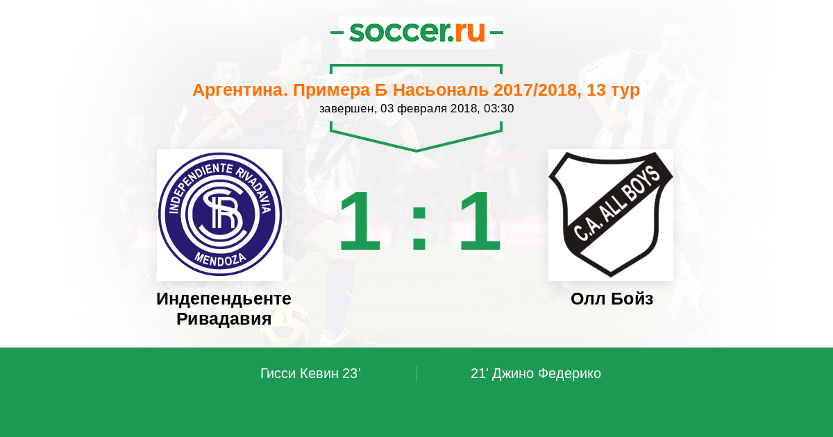 Индепендьенте Ривадавия - Олл Бойз: обзор матча 3 февраля 2018