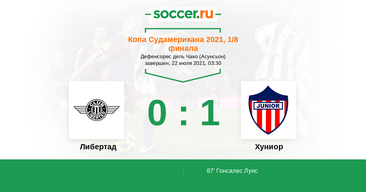 Либертад - Хуниор: обзор матча 22 июля 2021