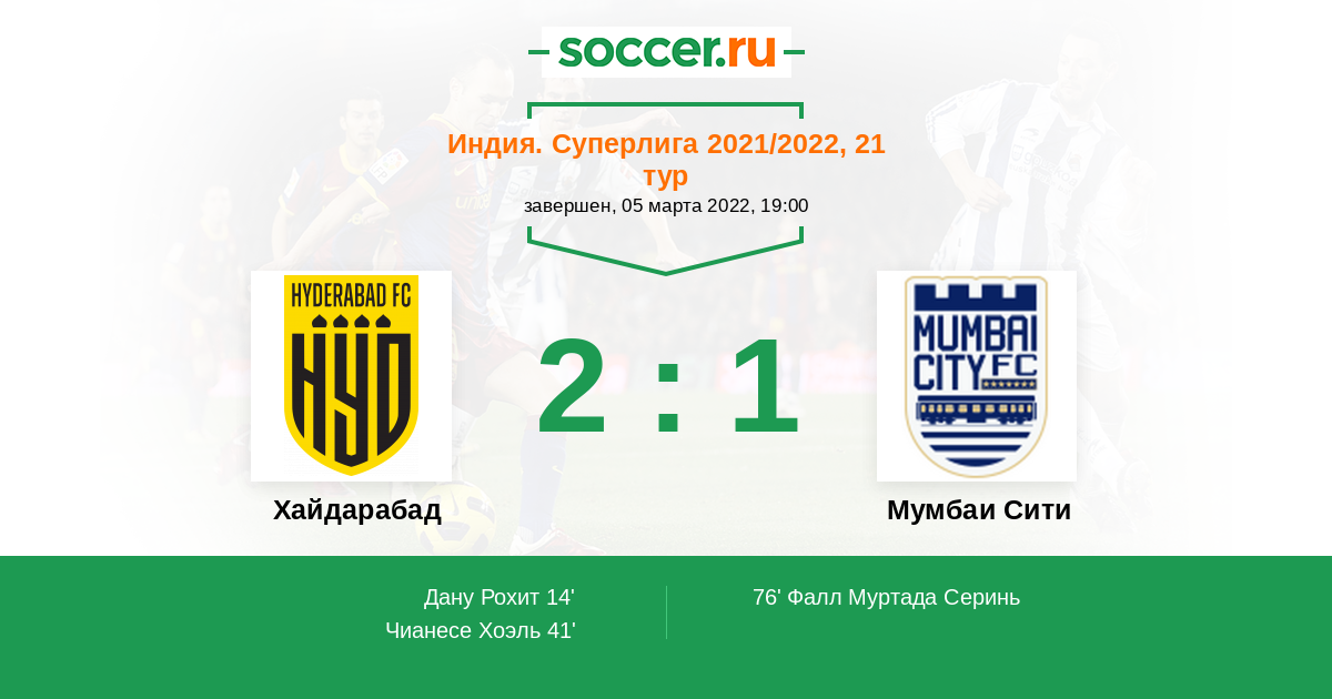 Хайдарабад - Мумбаи Сити: обзор матча 5 марта 2022