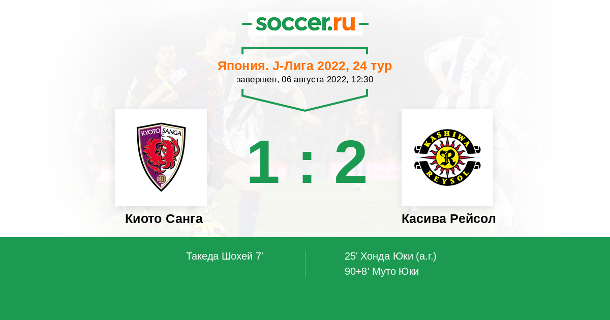Киото Санга - Касива Рейсол: обзор матча 6 августа 2022