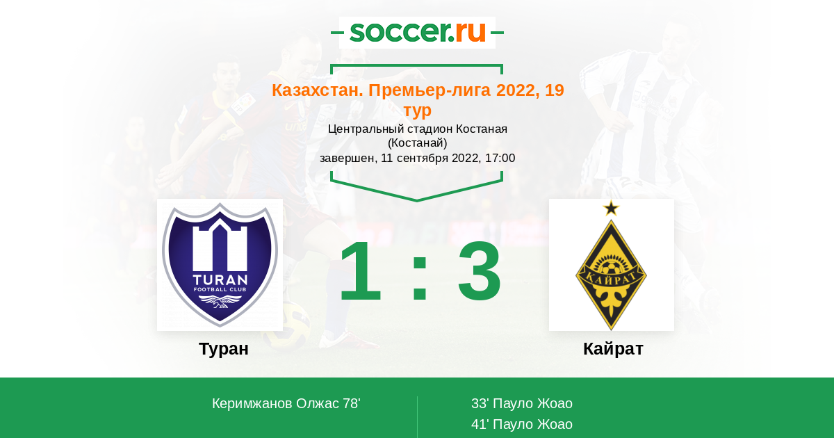 Туран - Кайрат: обзор матча 11 сентября 2022