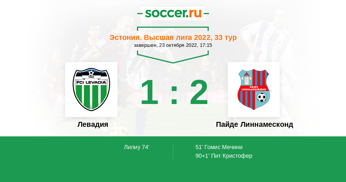 Левадия - Пайде Линнамесконд: обзор матча 23 октября 2022