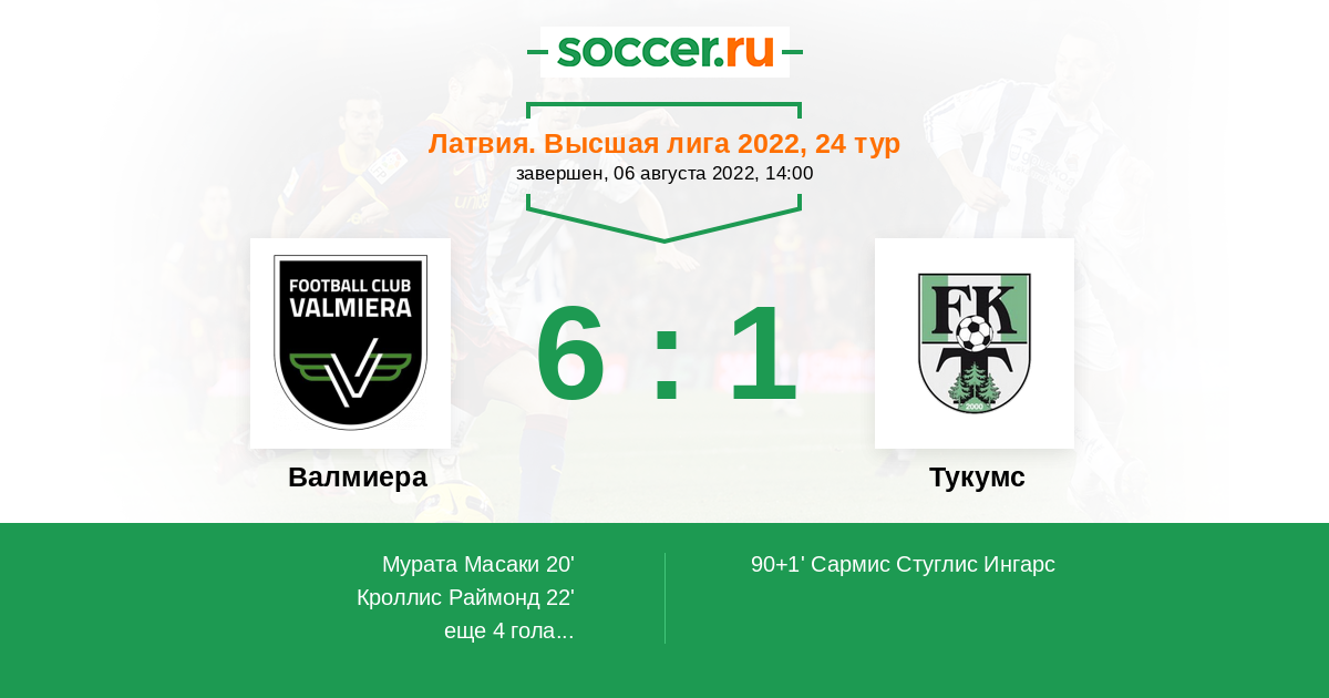 Валмиера - Тукумс: обзор матча 6 августа 2022