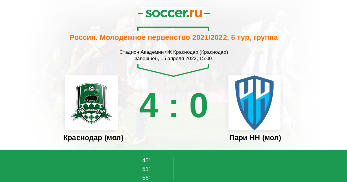 Краснодар (мол) - Пари НН (мол): обзор матча 15 апреля 2022