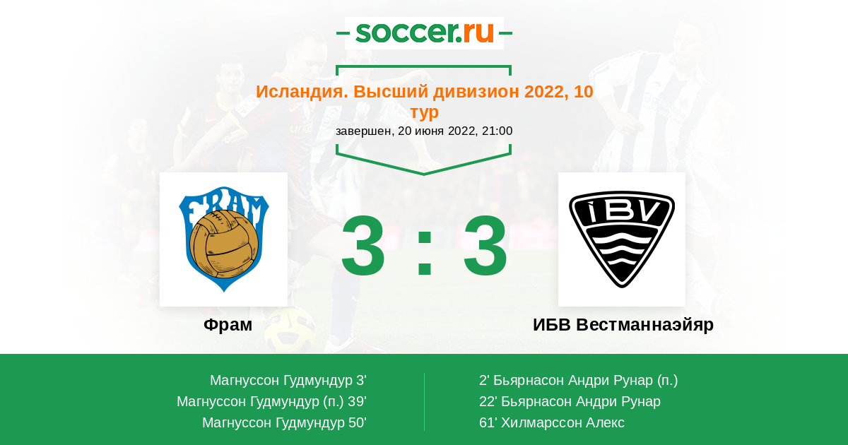 Фрам - ИБВ Вестманнаэйяр: обзор матча 20 июня 2022