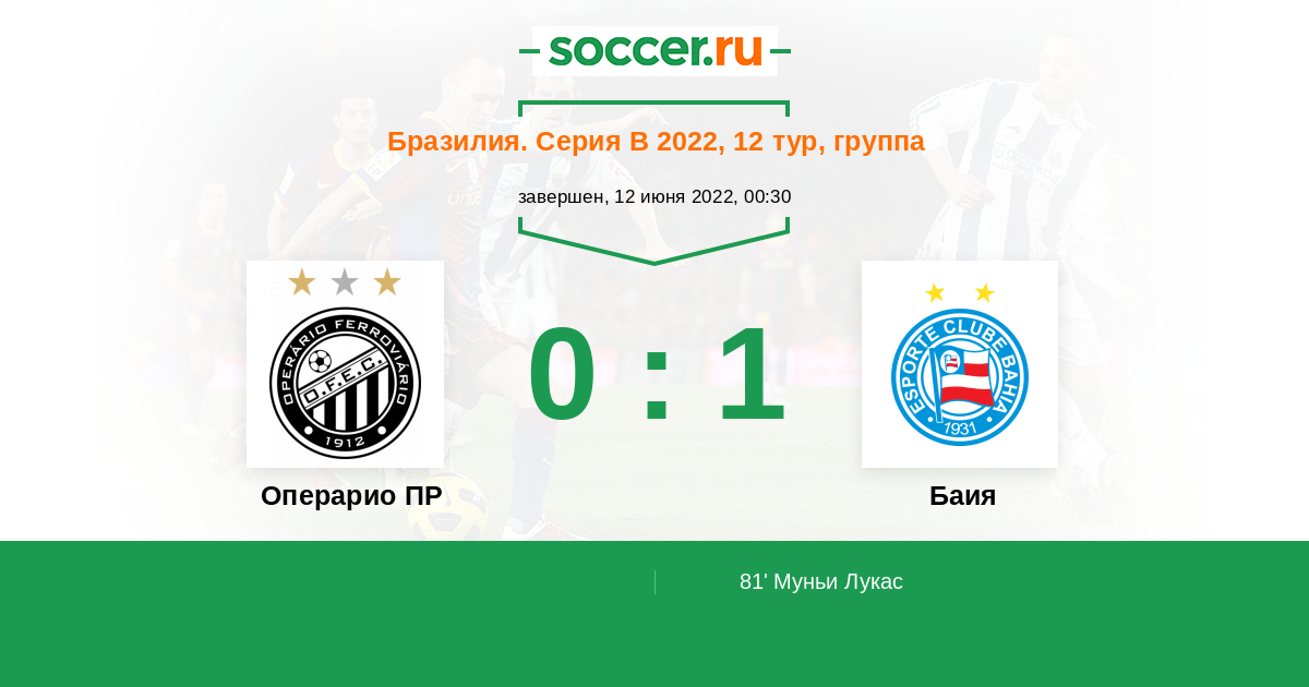 Операрио ПР - Баия: обзор матча 12 июня 2022