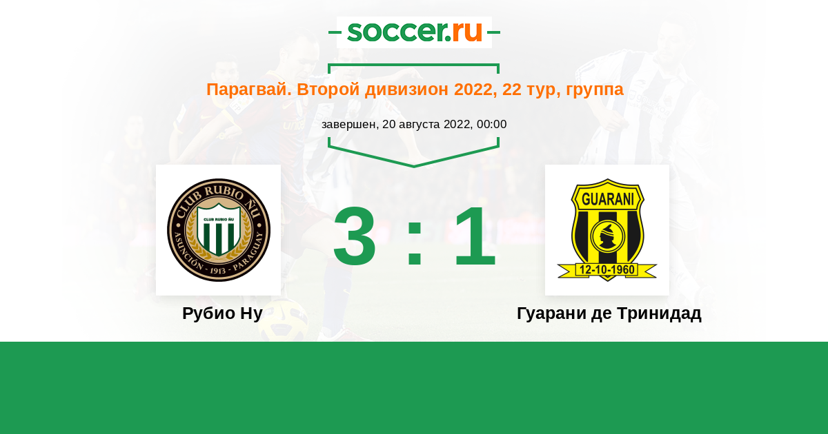 Рубио Ну - Гуарани де Тринидад: обзор матча 20 августа 2022