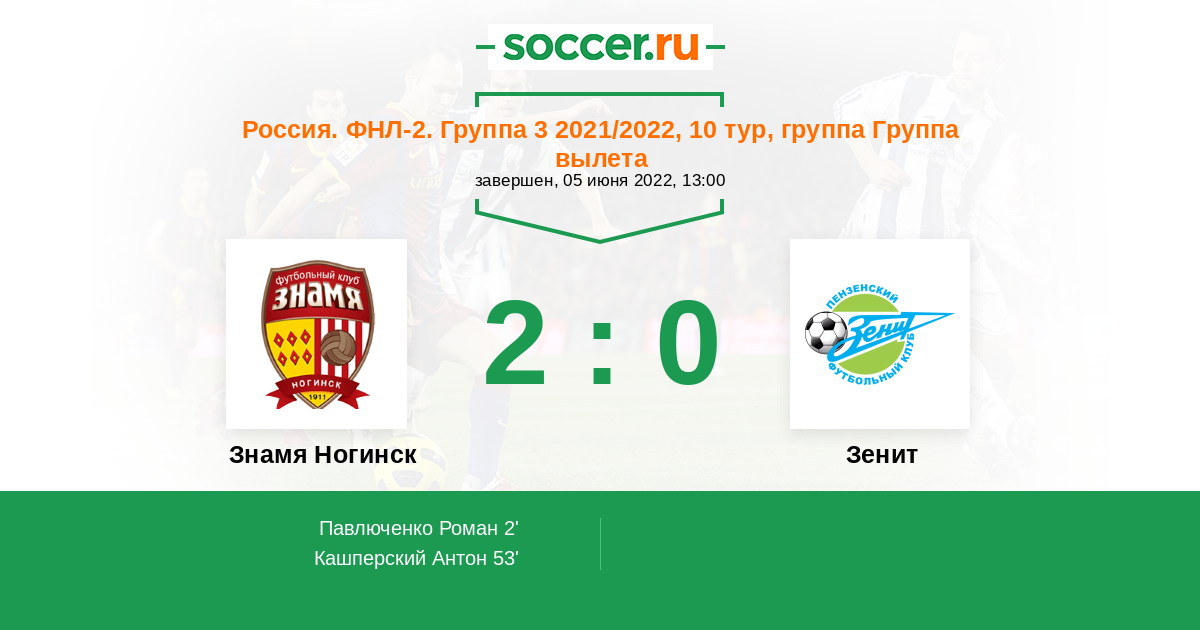 Знамя Ногинск - Зенит: обзор матча 5 июня 2022