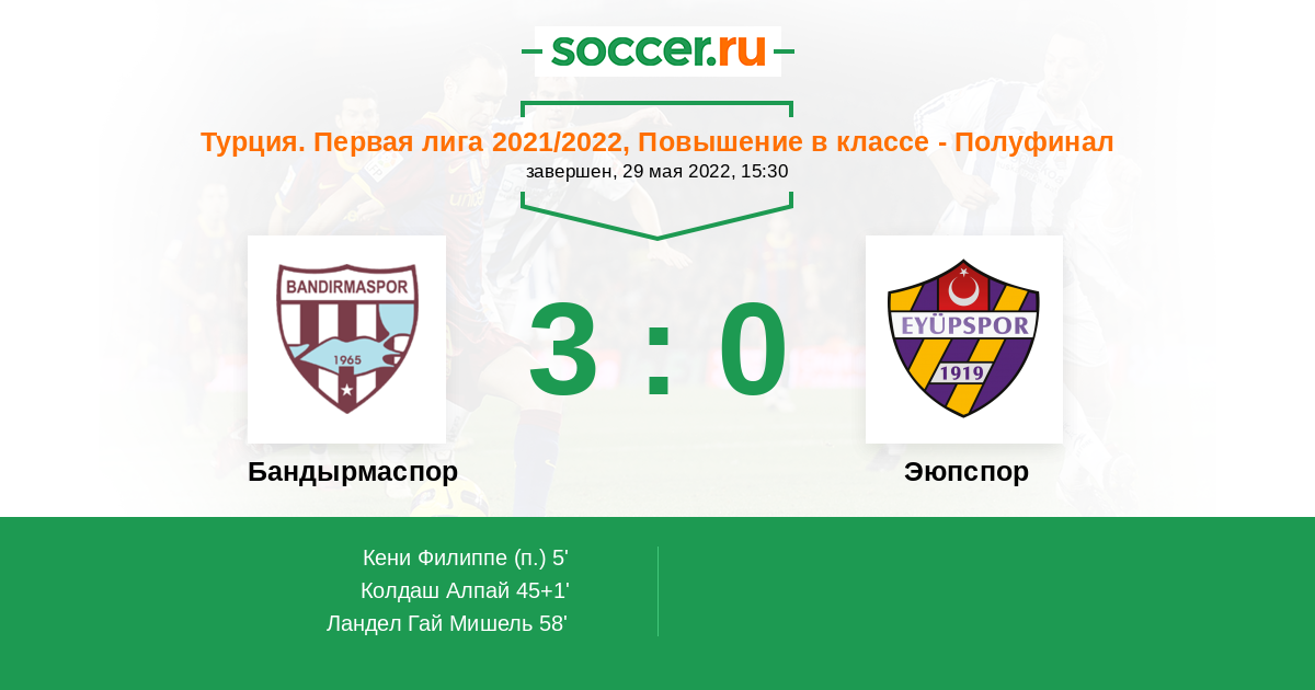Бандырмаспор - Эюпспор: обзор матча 29 мая 2022