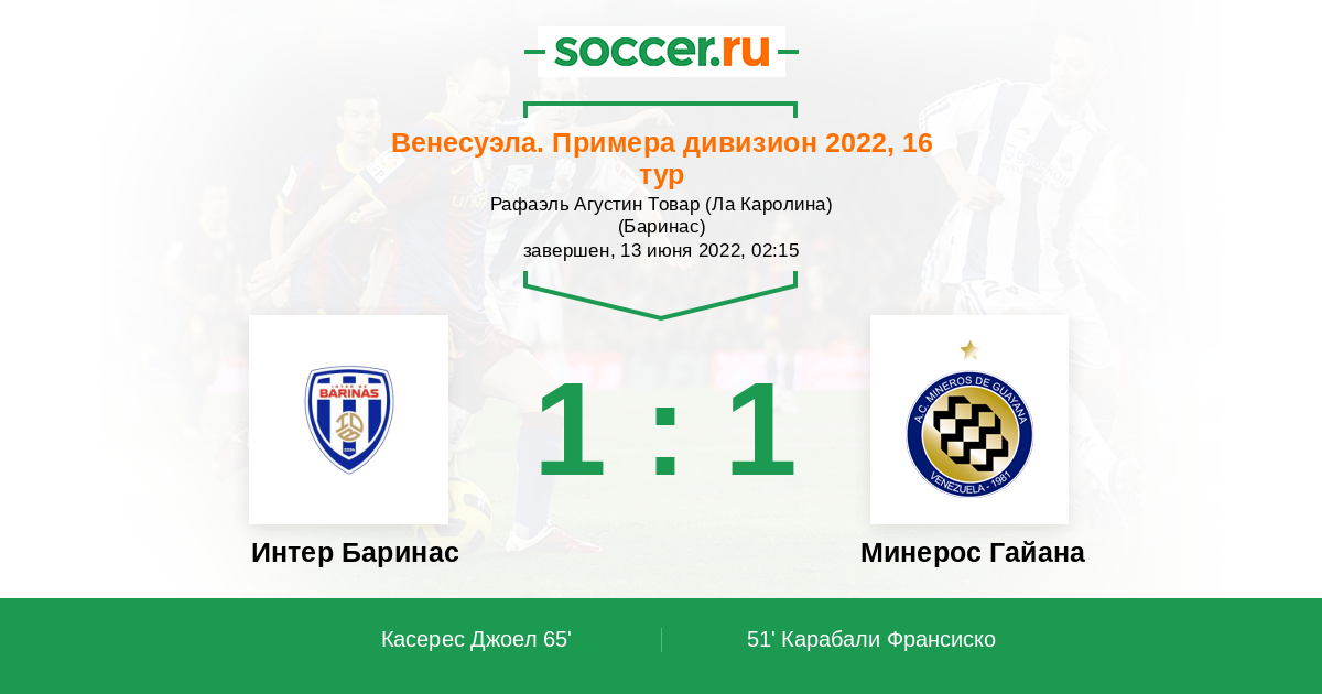 Интер Баринас - Минерос Гайана: обзор матча 13 июня 2022