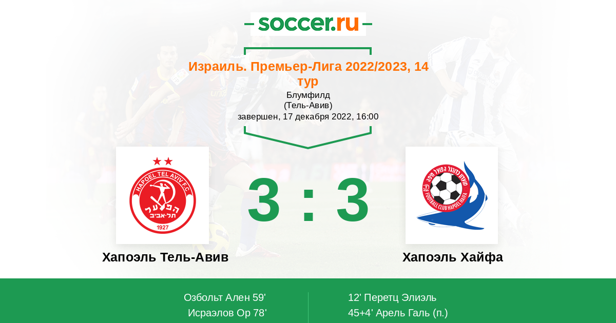 Хапоэль Тель-Авив - Хапоэль Хайфа: обзор матча 17 декабря 2022