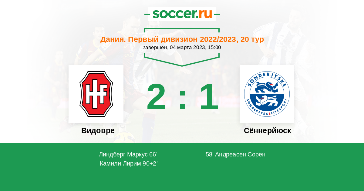 Нюкобинг | 22 | 4 | 5 | 13 | 2 | 26:44 | 17 |