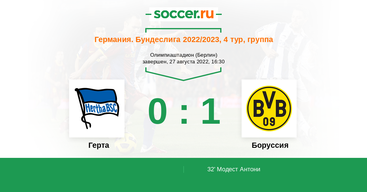 Особенно это касается нападения, ведь по ударам по воротам "Боруссия" уступает даже своему предстоящему сопернику. Кроме того, пока слабо выглядит на острие Антони Модест, однако в этом матче у француза отличные перспективы – он регулярно забивает "Герте". Команда Сандро Шварца пока тоже не впечатляет, словно прошлый сезон и не заканчивался – берлинцы не выигрывают, много ошибаются и постоянно обитают близ зоны вылета. Второго провала подряд Дортмунд точно не допустит, поэтому