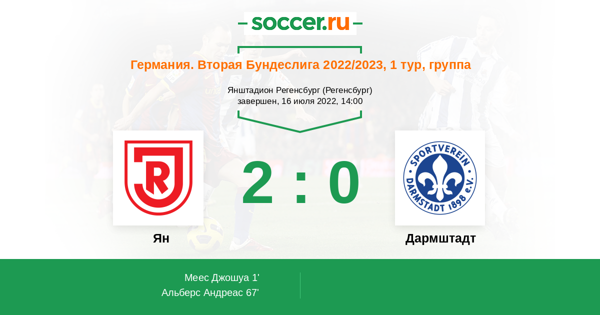 В первом туре Второй Бундеслиги Ян принимает Дармштадт. Букмекеры видят фаворитами гостей, и хотя я соглашусь, что Дармштадт сильнее - поставлю, всё-таки, что хозяева не уступят перед своими болельщиками.