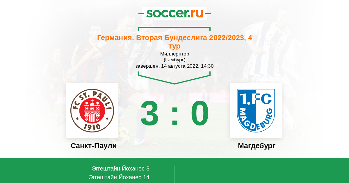 Санкт-Паули - Магдебург: обзор матча 14 августа 2022
