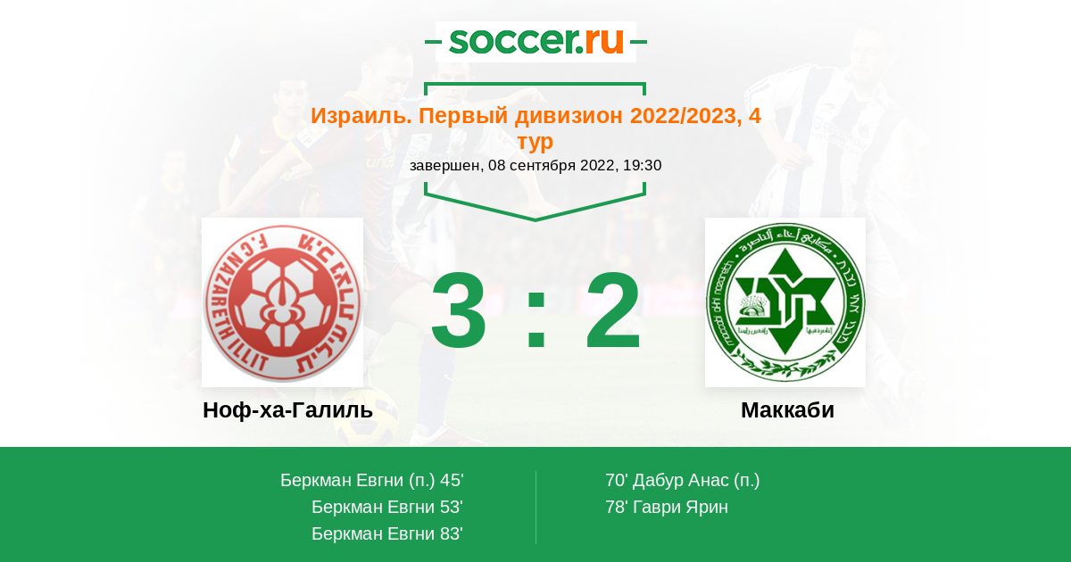 Ноф-ха-Галиль - Маккаби: обзор матча 8 сентября 2022