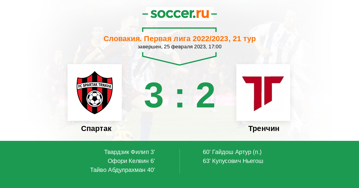 Спартак Тр | 22 | 12 | 4 | 6 | 7 | 39:26 | 40 |