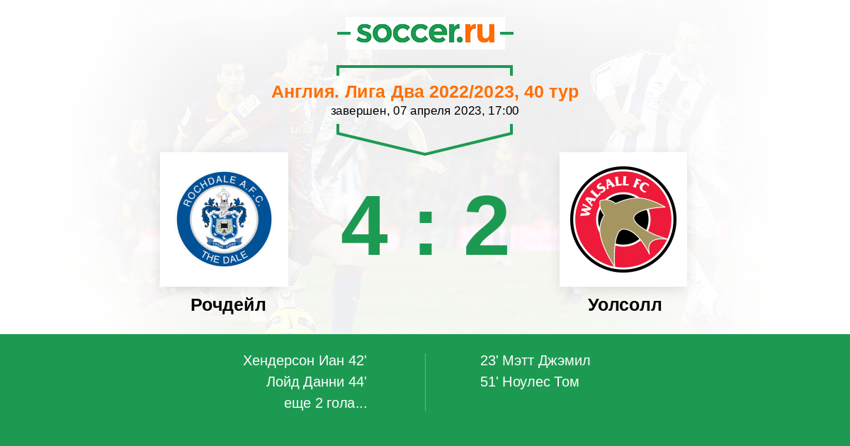 Рочдейл - Уолсолл: обзор матча 7 апреля 2023