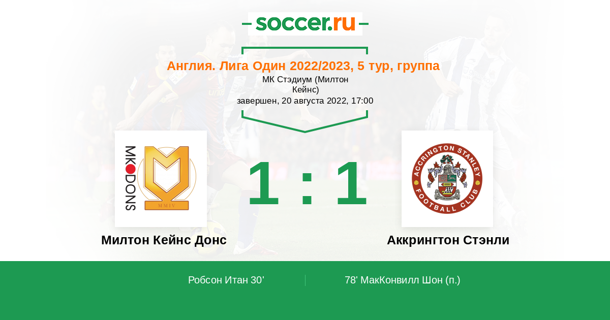 Милтон Кейнс Донс - Аккрингтон Стэнли: обзор матча 20 августа 2022
