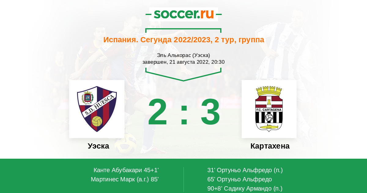 Уэска - Картахена: обзор матча 21 августа 2022