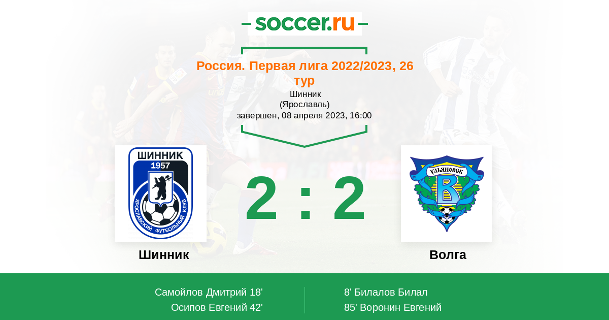 Шинник - Волга: обзор матча 8 апреля 2023