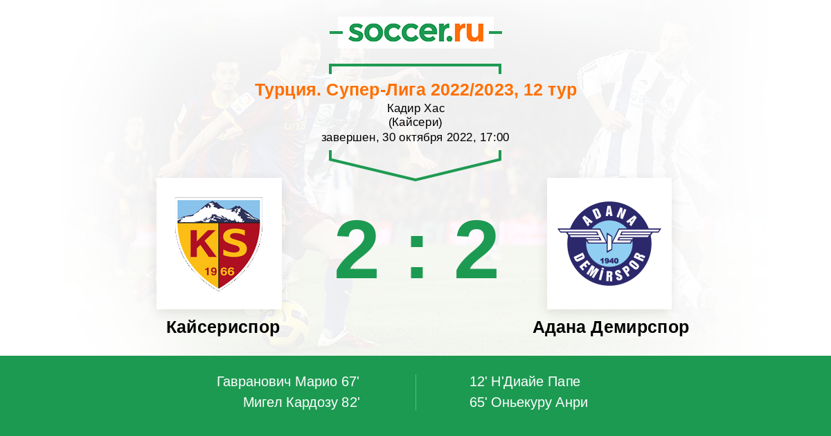 Кайсериспор - Адана Демирспор: обзор матча 30 октября 2022