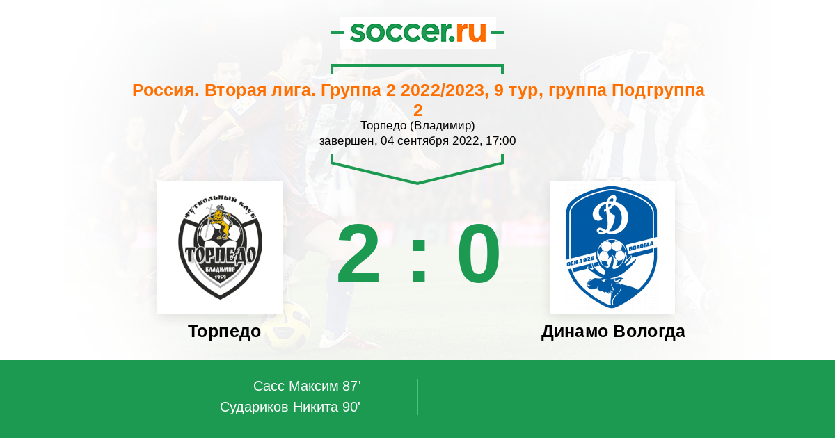 Торпедо - Динамо Вологда: обзор матча 4 сентября 2022