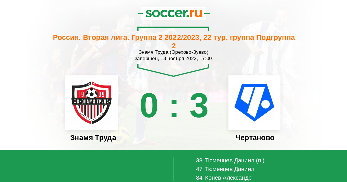 | 5. | Чертаново | 22 | 10 | 5 | 7 | 4 | 38:28 | 35 |