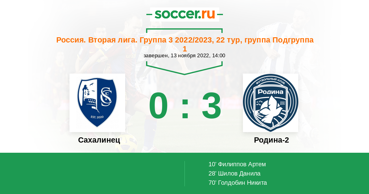 Сахалинец - Родина-2: обзор матча 13 ноября 2022