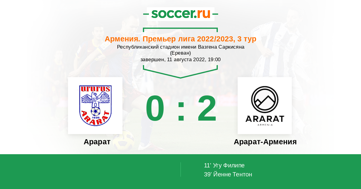 Арарат - Арарат-Армения: обзор матча 11 августа 2022