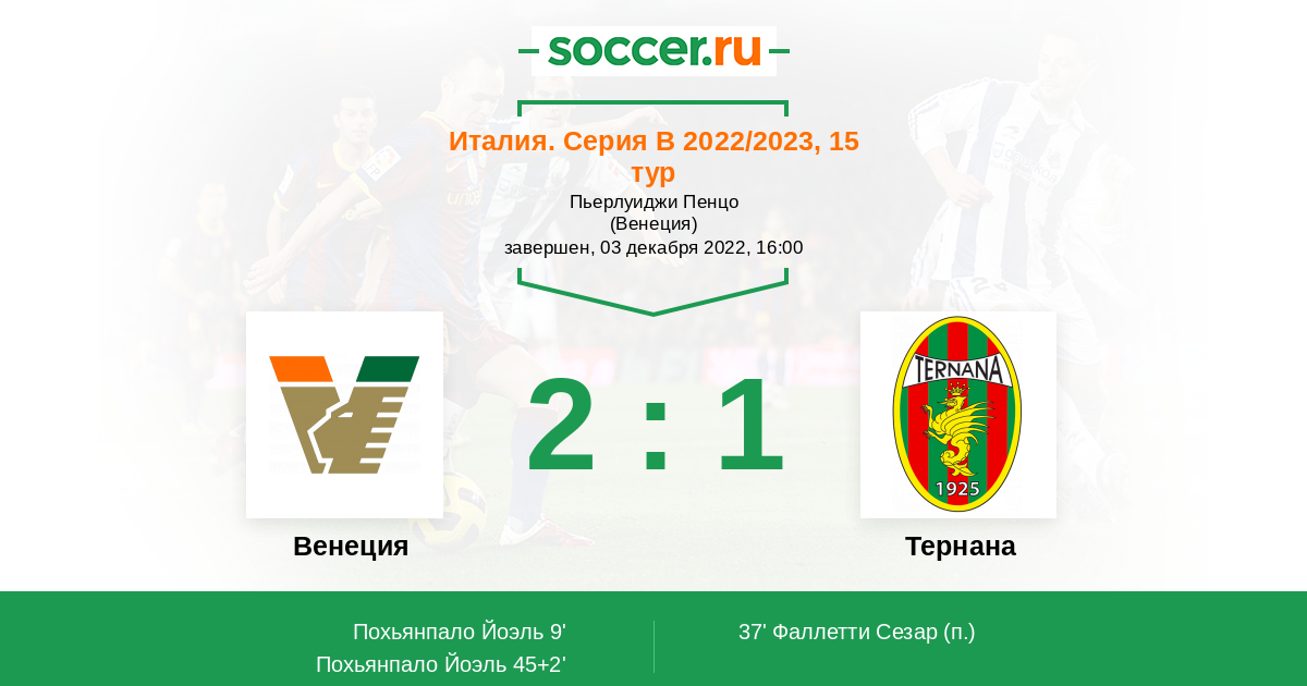 Венеция - Тернана: обзор матча 3 декабря 2022