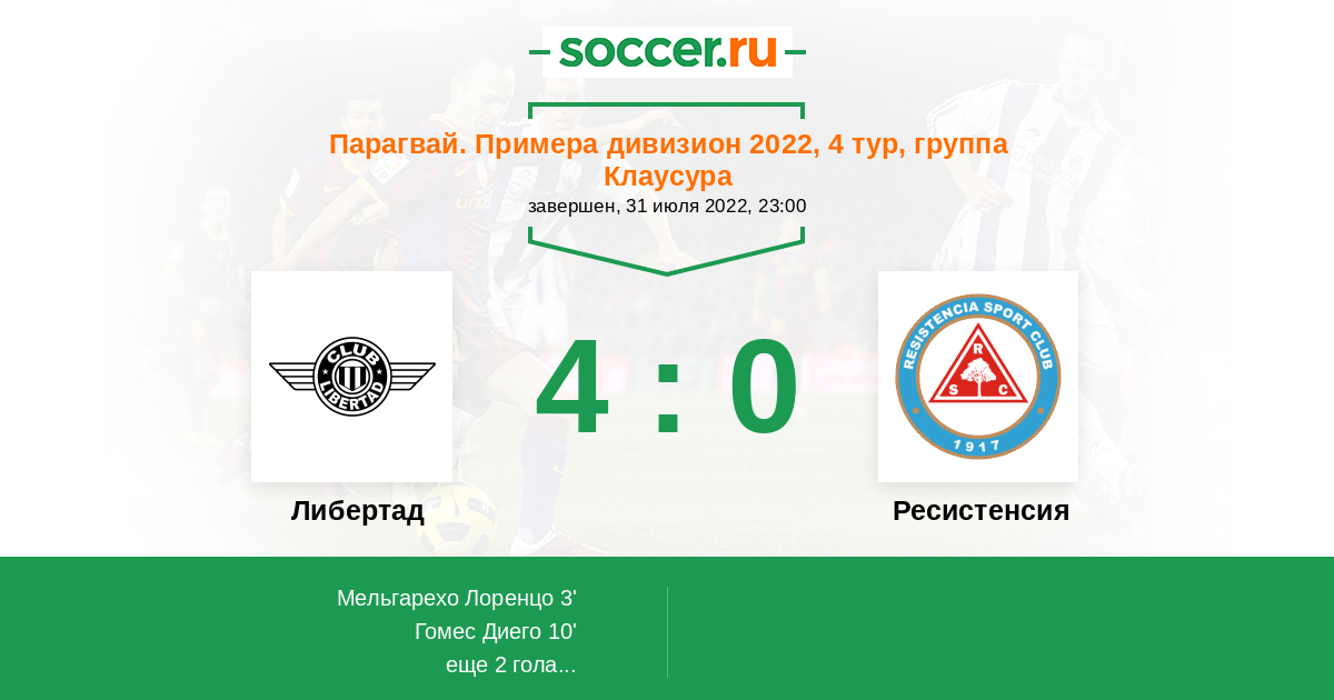 Либертад - Ресистенсия: обзор матча 31 июля 2022