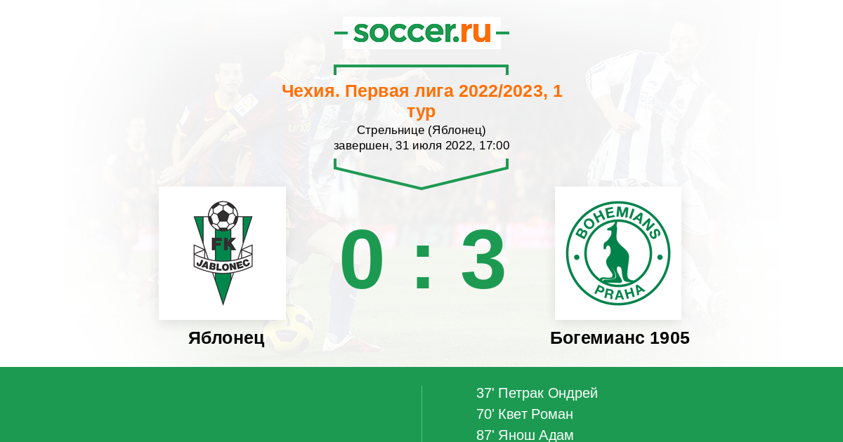 Яблонец - Богемианс 1905: обзор матча 31 июля 2022