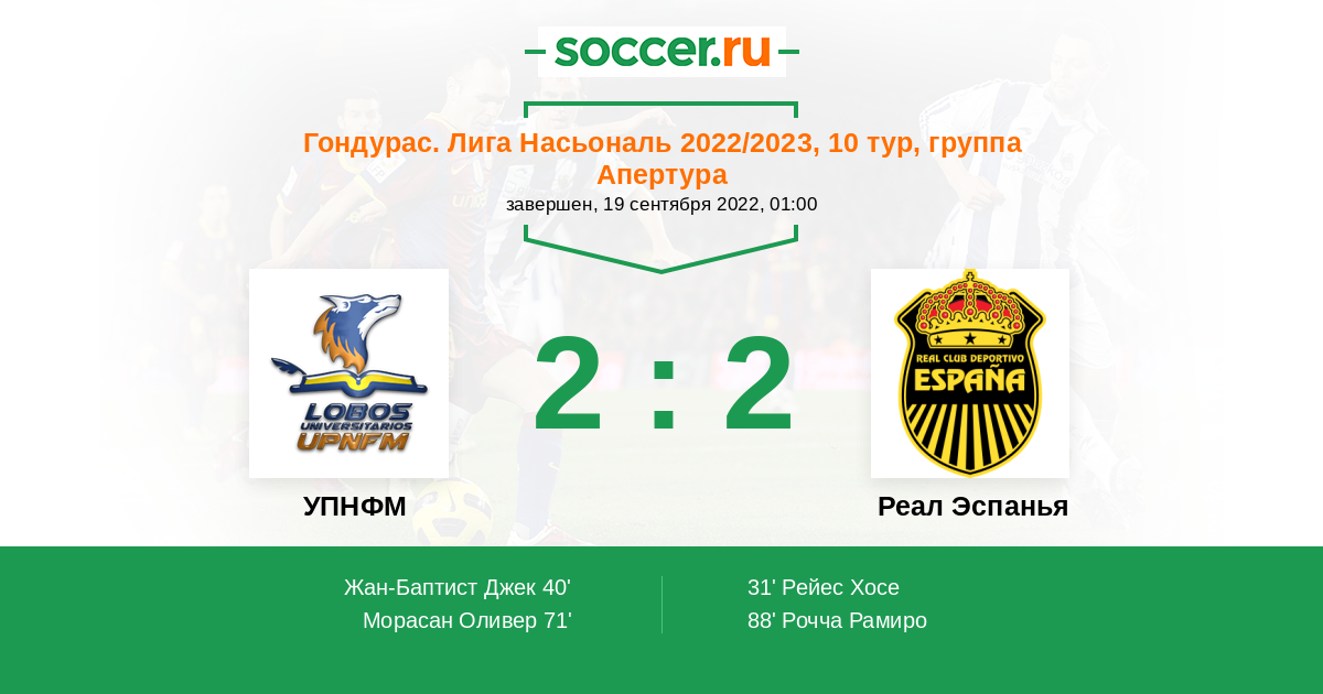 Реал Эспанья | 18 | 8 | 5 | 5 | 5 | 26:22 | 29 |