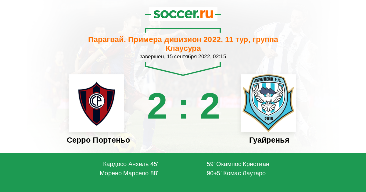 Серро Портеньо - Гуайренья: обзор матча 15 сентября 2022