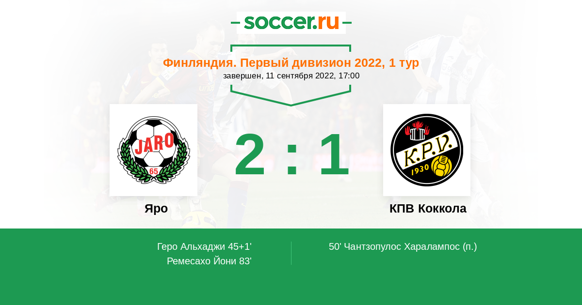 Яро - КПВ Коккола: обзор матча 11 сентября 2022