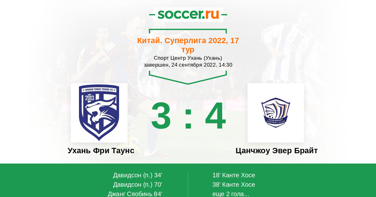 | 1. | Ухань Фри Таунс | 17 | 13 | 2 | 2 | 8 | 36:10 | 41 |