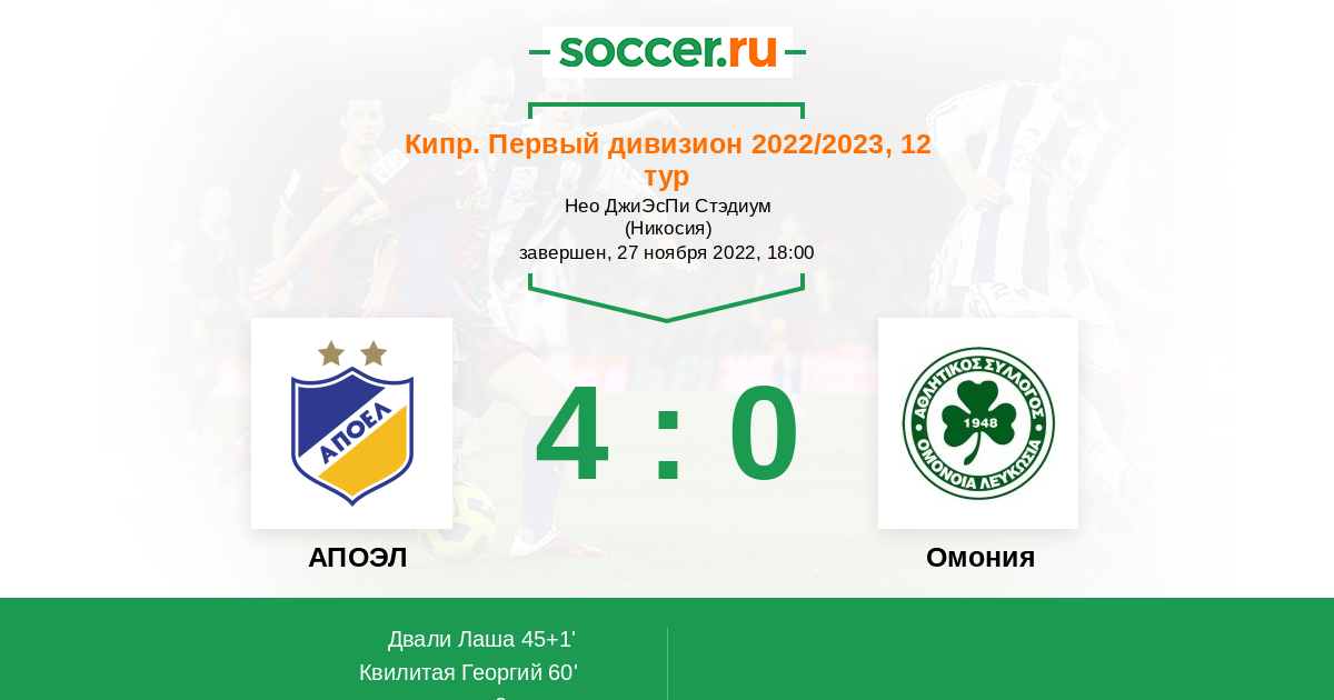 Омония | 26 | 13 | 2 | 11 | 12 | 37:28 | 41 |