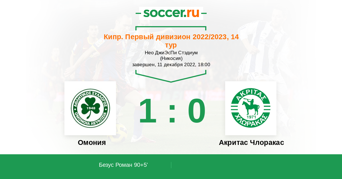 Омония - Акритас Члоракас: обзор матча 11 декабря 2022