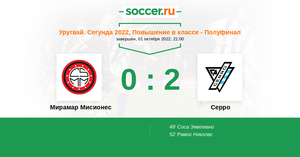 Мирамар Мисионес | 27 | 10 | 10 | 7 | 7 | 38:32 | 40 |