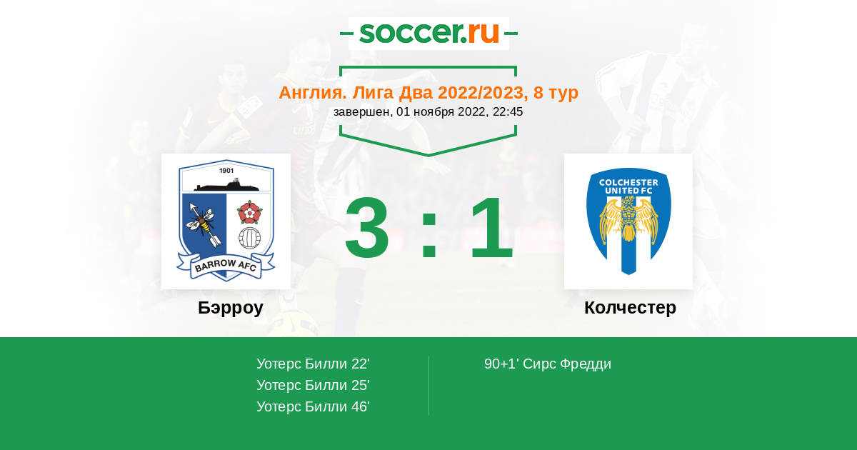 Бэрроу - Колчестер: обзор матча 1 ноября 2022