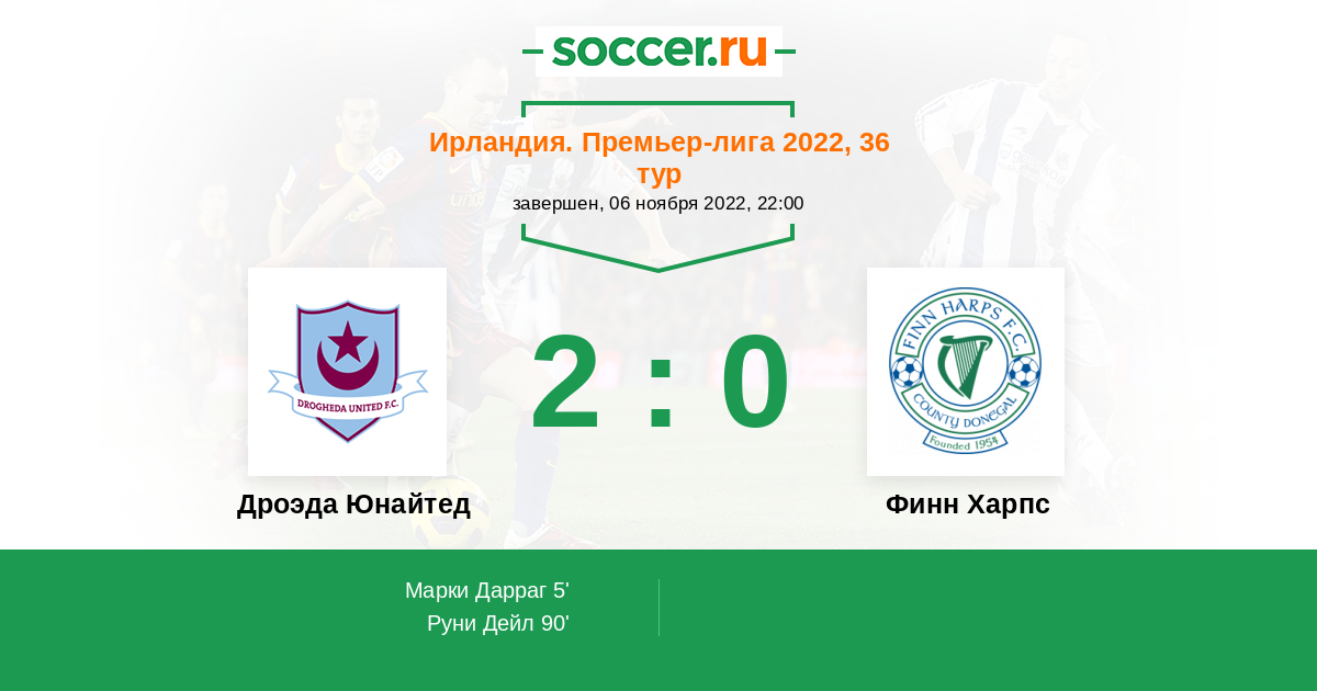Дроэда Юнайтед - Финн Харпс: обзор матча 6 ноября 2022