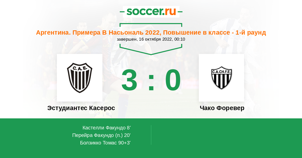 Эстудиантес Касерос - Чако Форевер: обзор матча 16 октября 2022