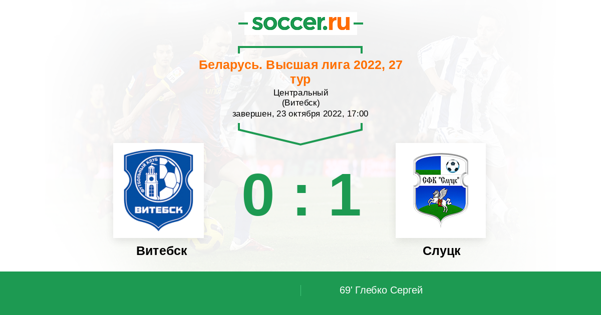 | 14. | Витебск | 15 | 2 | 6 | 7 | 2 | 13:25 | 12 |